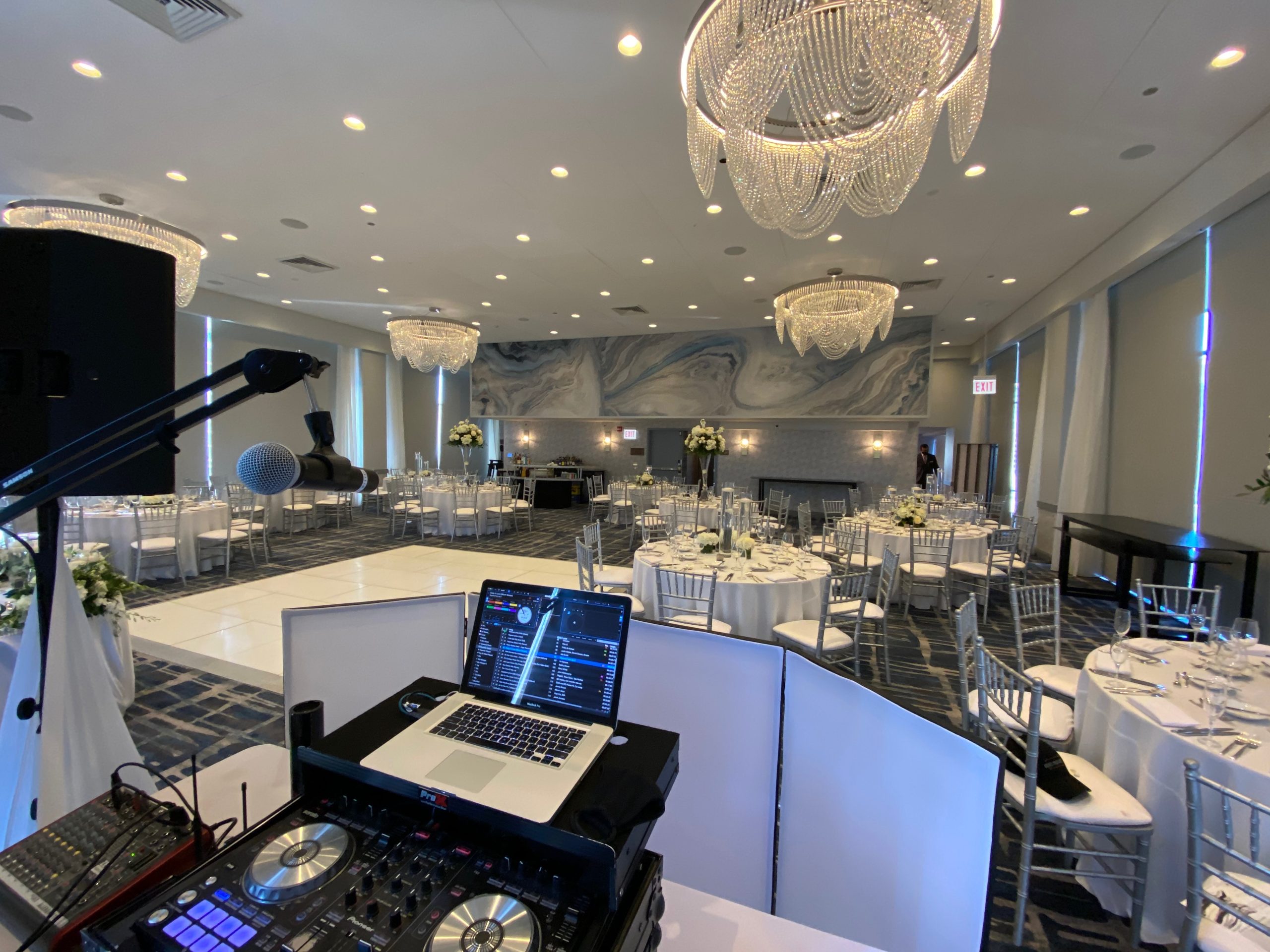 This is an example of the DJ booth setup for The Chateau Package. This includes: